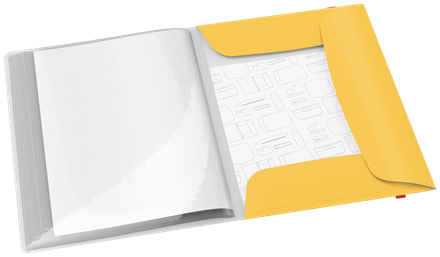 - Dodatkowe zagięcia na klapach pozwalają w razie potrzeby zwiększyć pojemność teczki