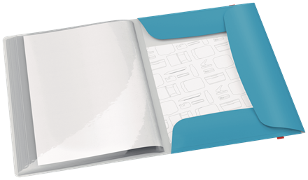 - Dodatkowe zagięcia na klapach pozwalają w razie potrzeby zwiększyć pojemność teczki