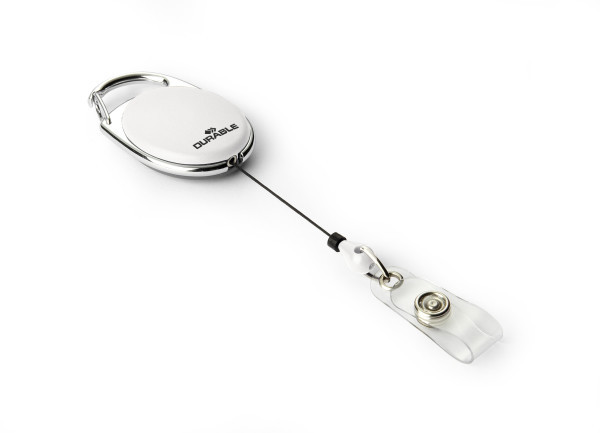 Stylowy owalny mechanizm ściągający z metalowym klipem na tylnej ściance. Umożliwia szybki i łatwy dostęp do karty lub identyfikatorów DURABLE z otworami na klip. Długość linki: 80 cm. Kolor szary. Jednostka sprzedaży 1 opak.