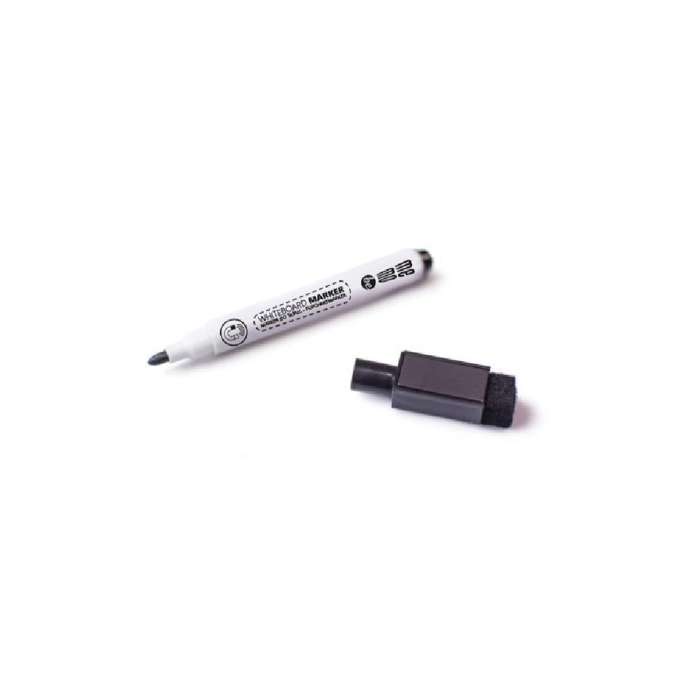 Marker do tablic suchościeralnych Memoboards. Czarny kolor tuszu. Nasadka markera zaopatrzona jest w gąbkę do mazania tablicy i w magnes. Bardzo funkcjonalny i wygodny w użytkowaniu marker ze względu na połączenie trzech funkcji. Marker poza podstawową funkcją piszącą, dzięki wbudowanej gąbce czyści powierzchnię tablicy, a za pomocą magnesu możemy przymocować marker do tablicy.
