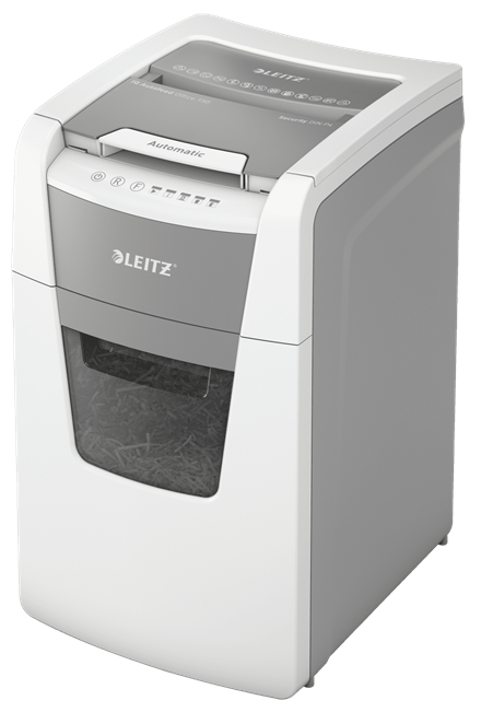W pełni automatyczna niszczarka do papieru firmy Leitz z unikalną funkcją samooczyszczania. Tak inteligentna, że wystarczy włożyć stos kartek (w tym ze zszywkami i spinaczami), zamknąć pokrywę i można wracać do swoich zajęć, a ona, cicho pracując, wykona samodzielnie zadaną pracę. Idealna do biur. Gwarantuje doskonałą wydajność - zapobiega zacięciom, jest cicha i może pracować przez 30 minut bez przerwy. Jednorazowo niszczy automatycznie do 150 kartek formatu A4, tnąc je na konfetti o poziomie bezpieczeństwa P-4 (4 x 28 mm) i umieszczając pocięte arkusze w dużym, 44-litrowym pojemniku. Dotykowy panel sterowania gwarantuje łatwą i intuicyjną obsługę urządzenia.