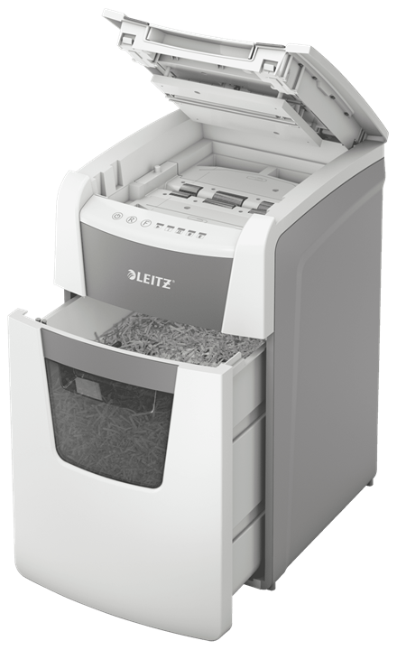 W pełni automatyczna niszczarka do papieru firmy Leitz z unikalną funkcją samooczyszczania. Tak inteligentna, że wystarczy włożyć stos kartek (w tym ze zszywkami i spinaczami), zamknąć pokrywę i można wracać do swoich zajęć, a ona, cicho pracując, wykona samodzielnie zadaną pracę. Idealna do biur. Gwarantuje doskonałą wydajność - zapobiega zacięciom, jest cicha i może pracować przez 30 minut bez przerwy. Jednorazowo niszczy automatycznie do 150 kartek formatu A4, tnąc je na konfetti o poziomie bezpieczeństwa P-4 (4 x 28 mm) i umieszczając pocięte arkusze w dużym, 44-litrowym pojemniku. Dotykowy panel sterowania gwarantuje łatwą i intuicyjną obsługę urządzenia.
