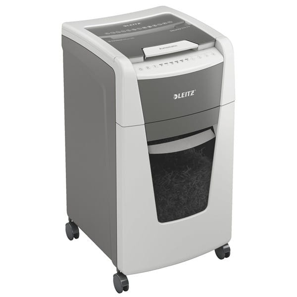 W pełni automatyczna niszczarka do papieru firmy Leitz z unikalną funkcją samooczyszczania. Tak inteligentna, że wystarczy włożyć stos kartek (w tym ze zszywkami i spinaczami), zamknąć pokrywę i można wracać do swoich zajęć, a ona, cicho pracując, wykona samodzielnie zadaną pracę. Idealna do małych biur. Gwarantuje doskonałą wydajność - zapobiega zacięciom, jest cicha i może pracować przez 60 minut bez przerwy. Jednorazowo niszczy automatycznie do 300 kartek formatu A4, tnąc je na konfetti o poziomie bezpieczeństwa P-5 (2 x 15 mm) i umieszczając pocięte arkusze w dużym, 60-litrowym pojemniku. Dotykowy panel sterowania gwarantuje łatwą i intuicyjną obsługę urządzenia.