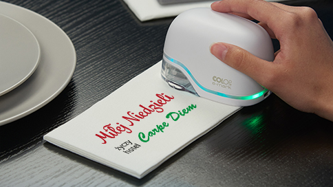 E-mark jest pierwszym na świecie mobilnym, elektronicznym, wielokolorowym, zasilanym przez baterię urządzeniem znakującym od firmy COLOP. To elektroniczne urządzenie znakujące, które oferuje wydruki w pełnym kolorze w niemal nieograniczonych wariantach. Imponujące wydruki pieczęci z logotypami i zdjęciami. Datownik, numerator, generator kodów QR i kreskowych w jednym urządzeniu. A to wszystko tworzone w sposób prosty, intuicyjny. E-mark pozwala na oznaczanie, stemplowanie, automatyczne numerowanie. Nadruki mogą być wykonywane na każdej chłonnej powierzchni, takiej jak: dokumenty, koperty, książki, torebki papierowe, taśmy tekstylne, kartony i wiele, wiele innych. E-mark oferuje niezliczoną ilość możliwości - prawdziwe narzędzie marketingowe, biurowe i przemysłowe.