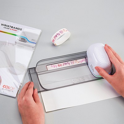 Podobnie jak prowadnice do urządzenia E-mark, linijka COLOP E-mark może być używana razem z materiałami eksploatacyjnymi z gamy produktów COLOP E-mark. Linijka jest szczególnie odpowiednia do opasek papierowych do druku urządzeniem E-mark.