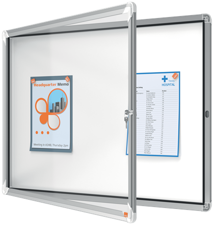 - Gablota ogłoszeniowa z drzwiami wykonanymi z bezpiecznego szkła, zamykanymi z boku na klucz