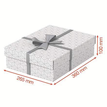 Zestaw trzech nowoczesnych i stylowych tekturowych pudełek ze zdejmowaną pokrywą, idealnych do zapakowania prezentów lub szybkiego wykreowania w domu nowego miejsca do przechowywania. Można je używać oddzielnie lub ustawiać na półkach i regałach, aby mniejsze rzeczy, takie jak zdjęcia czy dokumenty osobiste były przechowywane w uporządkowany i łatwy do znalezienia sposób. Dodaj wstążkę i zapakuj prezent! Po wyjęciu prezentu obdarowany może wykorzystać pudełko do przechowywania różnych rzeczy, dzięki czemu otrzyma 2 prezenty w jednym. Wykonane z mocnej tektury falistej, w 100% pochodzącej z recyklingu i w 100% nadającej się do ponownego przetworzenia, opatrzonej certyfikatem FSC. Mają gładką, łatwą do czyszczenia powierzchnię z dwukolorowym, geometrycznym wzorem, dopełniającym styl wnętrza. Pudełka są dostarczane na płasko, do samodzielnego złożenia, a ich montaż jest szybki i łatwy. Po złożeniu boki pudełka tworzą podwójne ścianki, dzięki czemu pudełka są mocne i dobrze chronią zawartość. Wszystkie mają ten sam rozmiar.