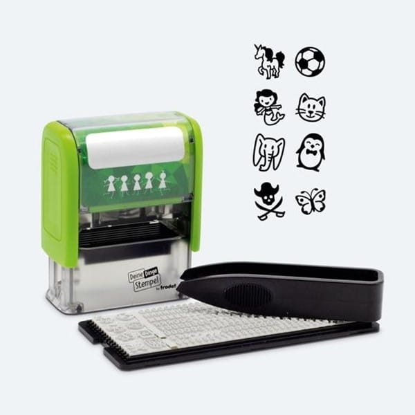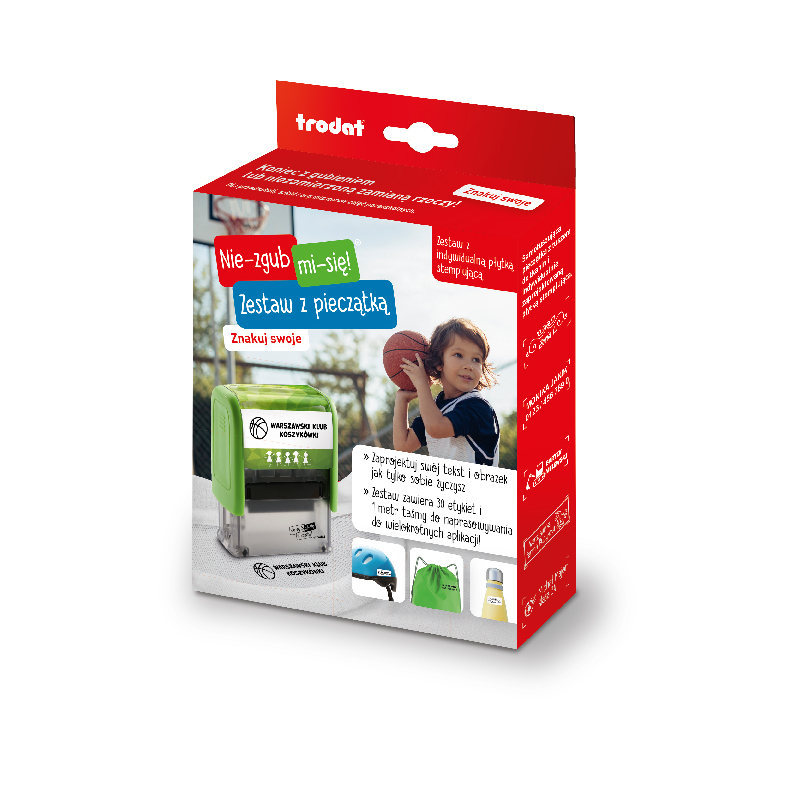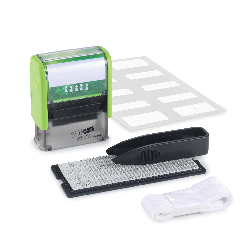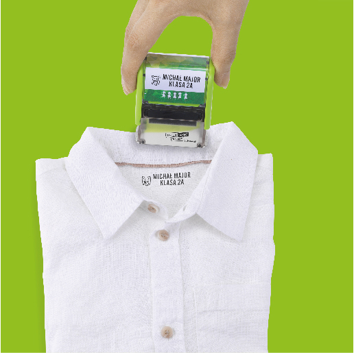 Pieczątki do znakowania ubrań i przedmiotów osobistych. Rozwiązanie pozwalające błyskawicznie oznakować wszystkie rzeczy, zabezpieczając je tym samym przed zgubieniem. Przebadany dermatologicznie, trwały tusz zostawia wyraźne i trwałe odbicia, odporne na pranie i zmywanie w zmywarce, zarówno na jasnych tkaninach, etykietach do naprasowywania na ciemne tkaniny, jak i na naklejkach do przedmiotów ze szkła, plastiku, czy metalu.