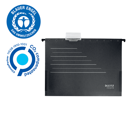 Efektowna, najwyższej jakości teczka zawieszana w kształcie litery v, odpowiednia dla formatu A4. Wykonana z kartonu w 100% pochodzącego z recyklingu, neutralna dla klimatu dzięki redukcji emisji i kompensacji CO2, w 100% nadaje się do ponownego przetworzenia; posiada certyfikat środowiskowy Blue Angel. Zapewnia łatwy i uporządkowany dostęp do dokumentów oraz maksymalne wykorzystanie miejsce do archiwizacji dzięki możliwości pionowego zawieszania dokumentów. Mocne, trwałe zawieszki wytrzymają intensywne użytkowanie, a dołączony uchwyt na etykiety pomaga w porządkowaniu i identyfikacji zawartości. Ta solidna teczka zawieszana zapewnia użytkowanie przez długie lata i doskonale pasuje do innych produktów z kolekcji Leitz Recycle. Kolekcja nowoczesnych, przyjaznych dla środowiska artykułów biurowych świetnie zaprezentuje się w domu i w biurze. Dzięki przyjaznej dla środowiska linii produktów Recycle oferowanej przez firmę Leitz masz wpływ na poprawę zarówno środowiska biurowego, jak i całej naszej planety.