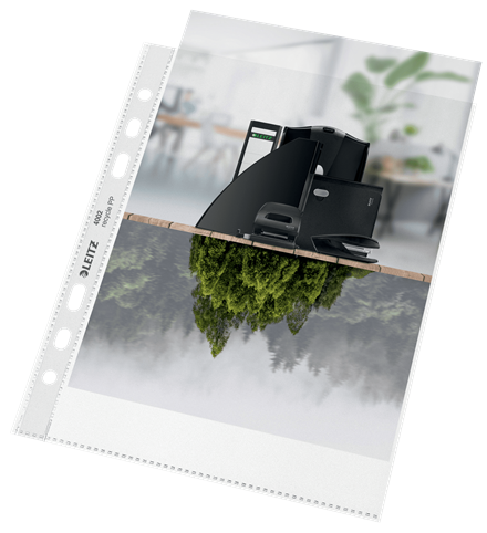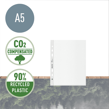 Przyciągające wzrok, najwyższej jakości koszulki na dokumenty A5 przeznaczone są do porządkowania dokumentów w biurze i w domu oraz ich ochrony podczas przenoszenia. Koszulki posiadają perforowany pasek, który służy do wpinania do segregatorów z mechanizmem dźwigniowym oraz ringowych. Wykonane z plastiku w 90% pochodzącego z recyklingu (przedkonsumpcyjnego), audytowane zewnętrznie i certyfikowane przez UL, neutralne dla klimatu dzięki redukcji emisji i kompensacji CO2. W 100% nadają się do ponownego przetworzenia. Te wytrzymałe, praktyczne koszulki z matowej folii groszkowej zapewniają użytkowanie przez długie lata i doskonale pasują do innych produktów z kolekcji Leitz Recycle. Kolekcja nowoczesnych, przyjaznych dla środowiska artykułów biurowych świetnie zaprezentuje się w domu i w biurze. Dzięki przyjaznej dla środowiska linii produktów Recycle oferowanej przez firmę Leitz masz wpływ na poprawę zarówno środowiska biurowego, jak i całej naszej planety.