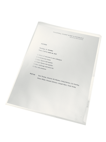 - Folder A4 do przenoszenia, ochrony i prezentacji dokumentów, zapewnia łatwy dostęp do zawartości od góry i z prawej strony