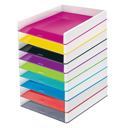 Przykuwająca wzrok, wysokiej jakości stylowa półka na dokumenty Leitz, w unikalnym zestawieniu 2 kolorów, wykończona z połyskiem. Idealnie pasuje do pozostałych produktów z kolekcji Leitz WOW.