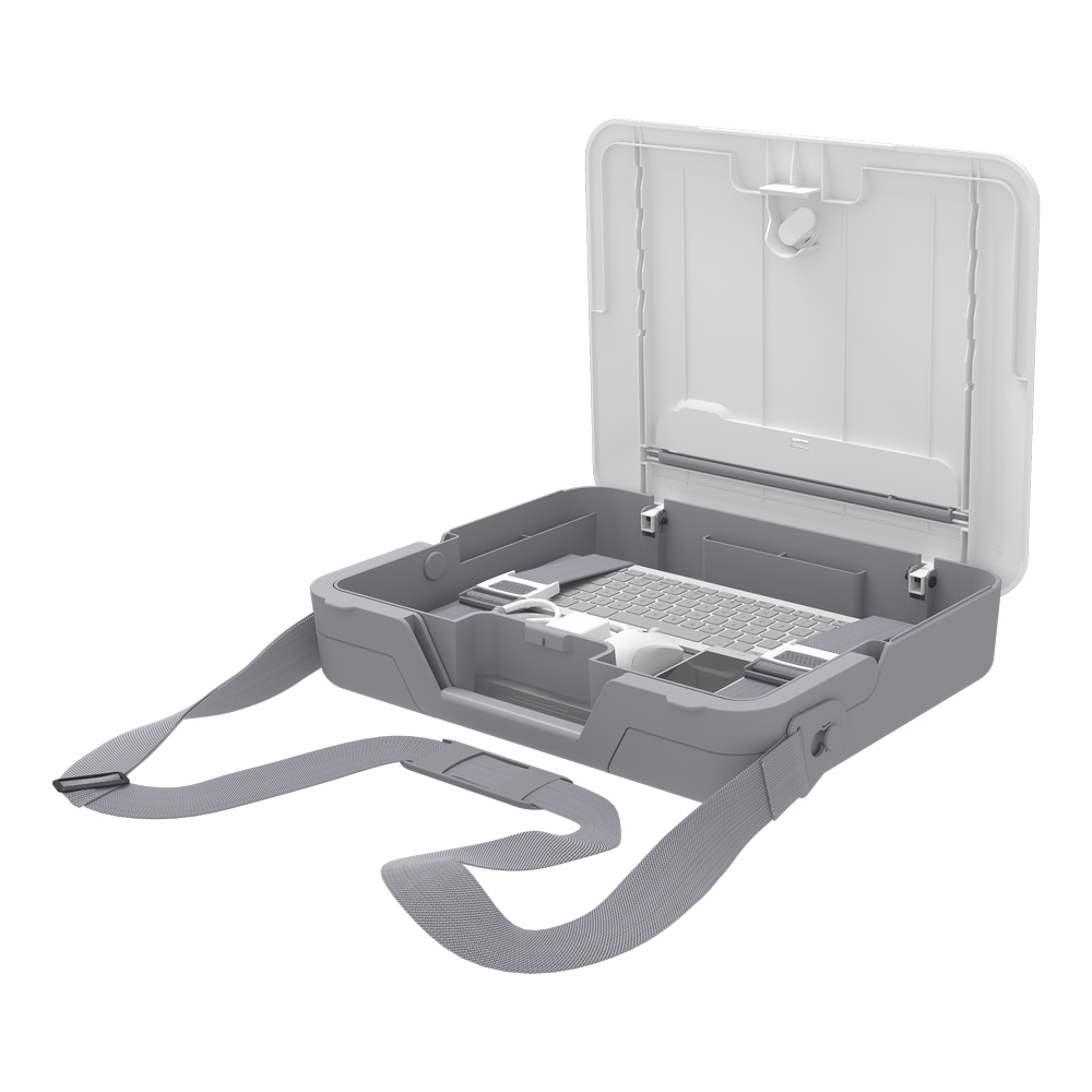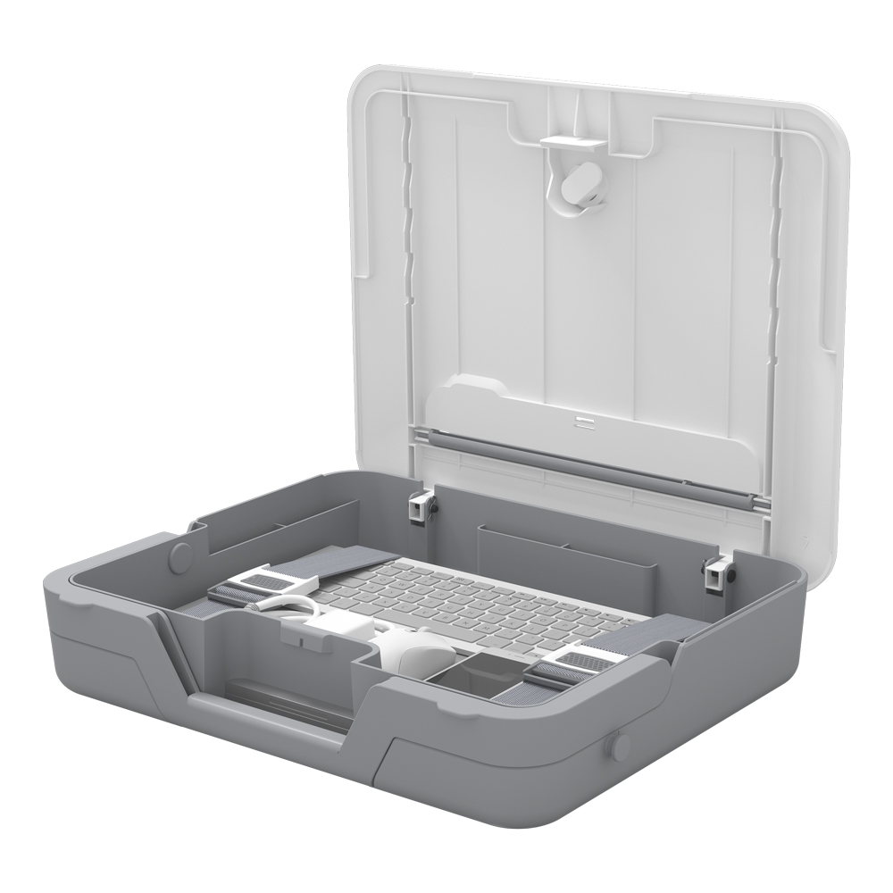 Dwa produkty w jednym ? zamykana walizka do przechowywania / przenoszenia oraz wbudowana podstawka na laptopa.