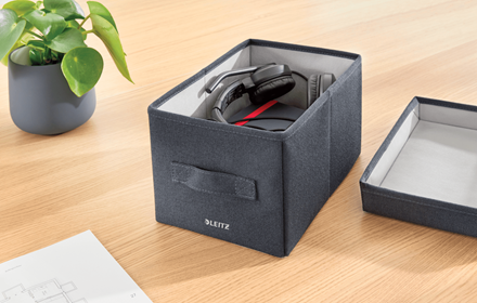 - Produkty do przechowywania z kolekcji Leitz Fabric łączą poczucie domowego komfortu z najwyższą jakością wykonania, tworząc pozytywne i produktywne środowisko pracy