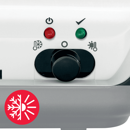 - Wyposażony jest we wskaźnik LED, informujący o włączonym zasilaniu (czerwony) i gotowości urządzenia do pracy (zielony).