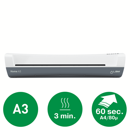 Lekki, niewielkich rozmiarów laminator Leitz iLAM Home A3 wniesie styl do Twojego domu. Jest prosty w obsłudze i gotowy w ciągu zaledwie 3 minut. Laminuje foliami o grubości do 2 x 125 mikronów, nadając dokumentom elegancki wygląd. Zapewnia dużą elastyczność, umożliwiając laminację dokumentów w rozmiarze od dowodu osobistego do formatu A3. W zestawie z pakietem startowym, zawierającym 5 folii UDT w formacie A4 (2 x 80 mikronów).