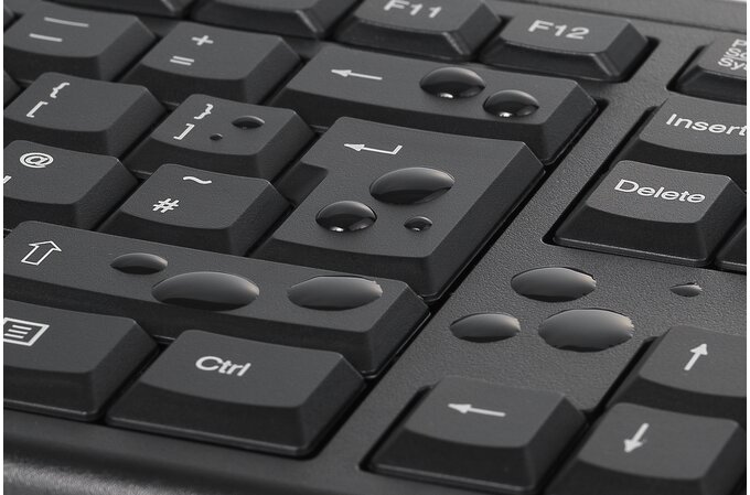 - Uszczelniona membrana zapewnia, że żadne rozlane płyny nie uszkodzą elektroniki. Wystarczy ją wytrzeć.