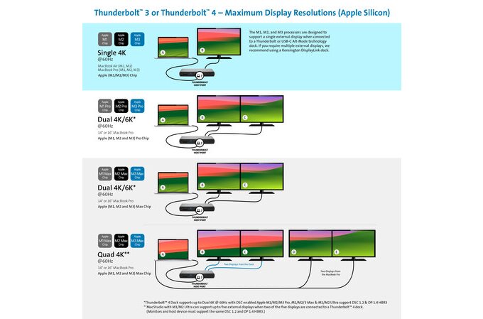 - Obsługuje pojedyncze wideo w rozdzielczości 8K przy 60 Hz przez port Thunderbolt 4, gdy włączone jest DSC lub podwójne wideo w rozdzielczości 4K przy 60 Hz przez dwa porty HDMI
