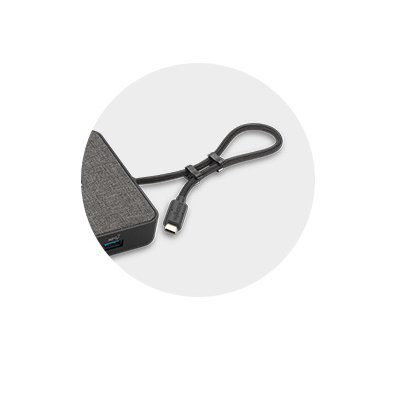 - Kabel USB4 o długości 25 cm (9,8") można zwinąć na czas podróży lub gdy nie jest używany.