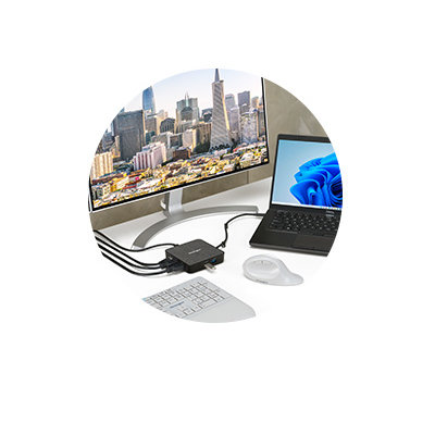 - Dzięki USB4, wiodącej technologii połączeń, stacja dokująca obsługuje urządzenia wyposażone w USB4, Thunderbolt 3, Thunderbolt 4 i USB-C 3.2 z systemem Windows 10 lub nowszym.